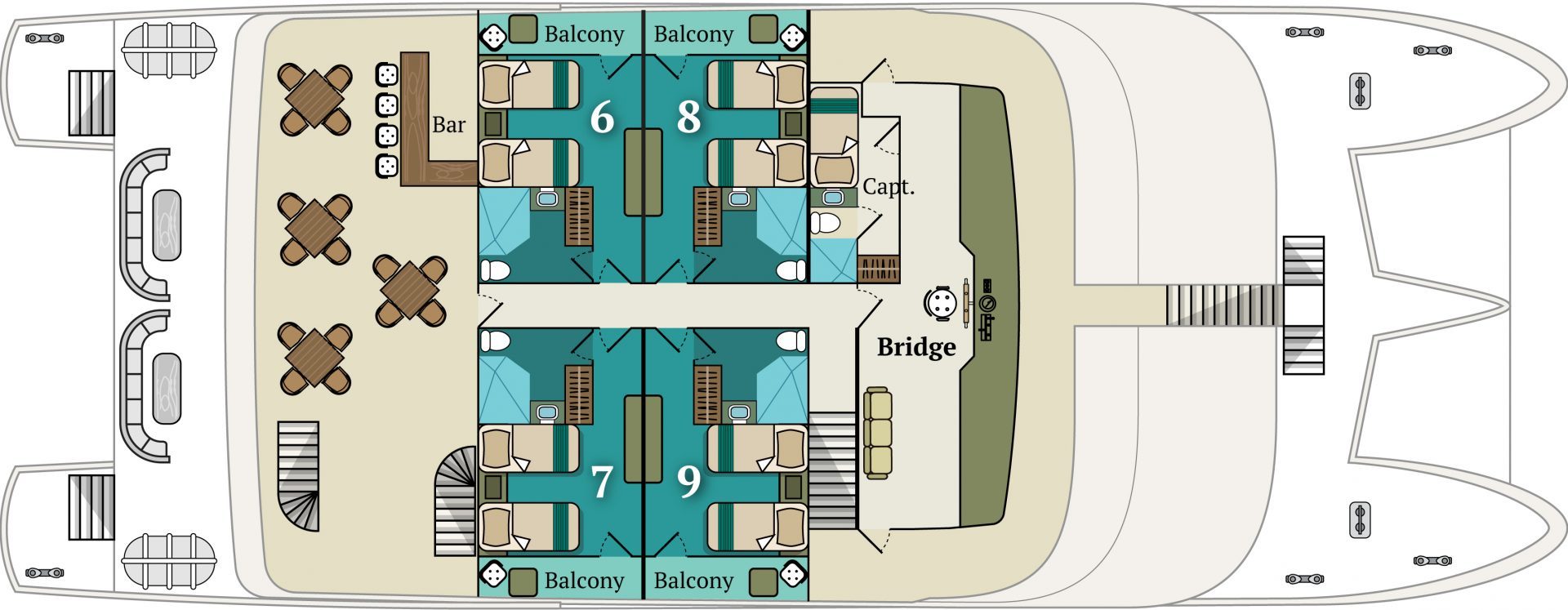 Groups & Charters: This yacht is also available for private charter or for small groups of friends or family. Its 9 cabins can accommodate up to 16 people. Inquire for more details.