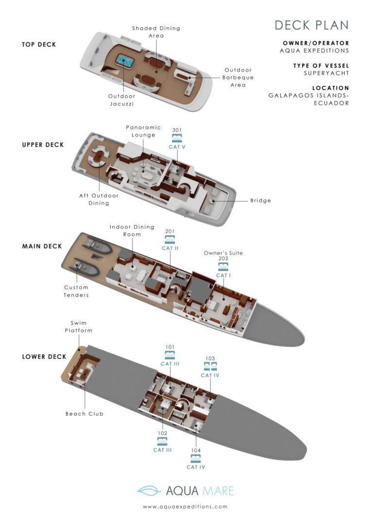 Included: All meals, house wines and beer, non-alcoholic drinks, guides & activities, group transfers to/from the vessel when traveling on the recommended flights, WiFi, laundry service, use of snorkeling equipment, wetsuits, kayaks, stand-up paddleboards, Galapagos Park entrance fee, and INGALA transit card
