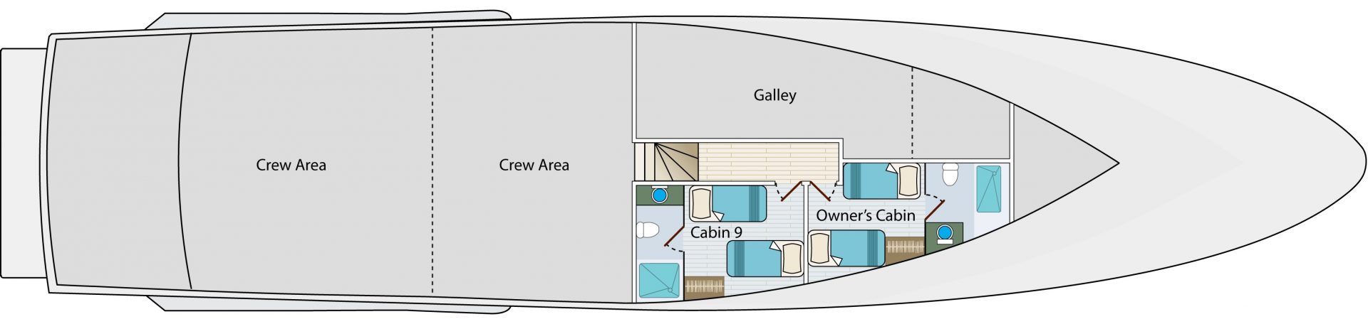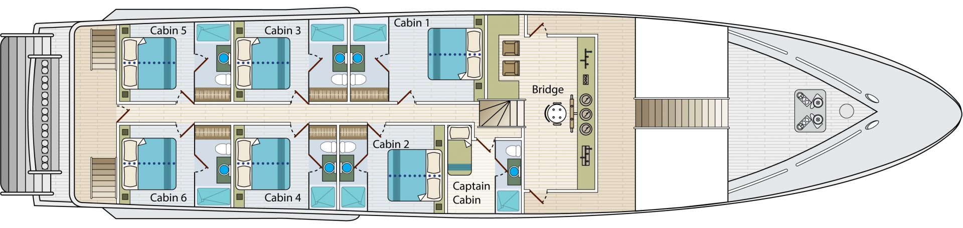 Groups & Charters: This yacht is also available for private charter or for small groups of friends or family. Its 10 cabins can accommodate up to 16 people. Inquire for more details.