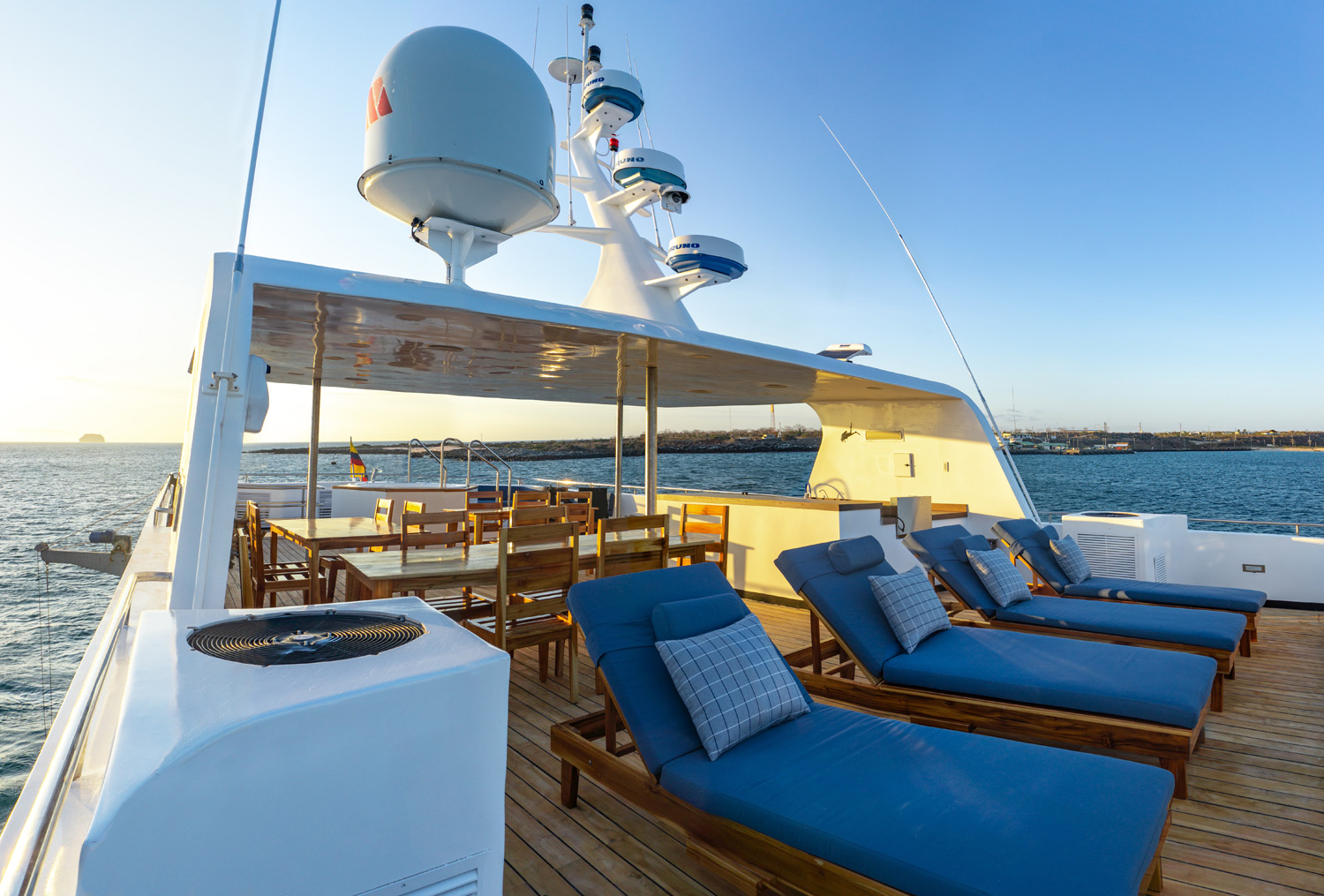 The 16-passenger Calipso is a comfortable and adventurous way to enjoy the islands. The boat features a spacious lounge, dining area, dive deck, sundeck with a Jacuzzi. Itineraries are split between a standard Galapagos island itinerary and one that includes diving (for those with previous diving experience). Excursions are led by a bilingual naturalist guide and include snorkeling, hiking, kayaking and diving (for the diving itineraries).