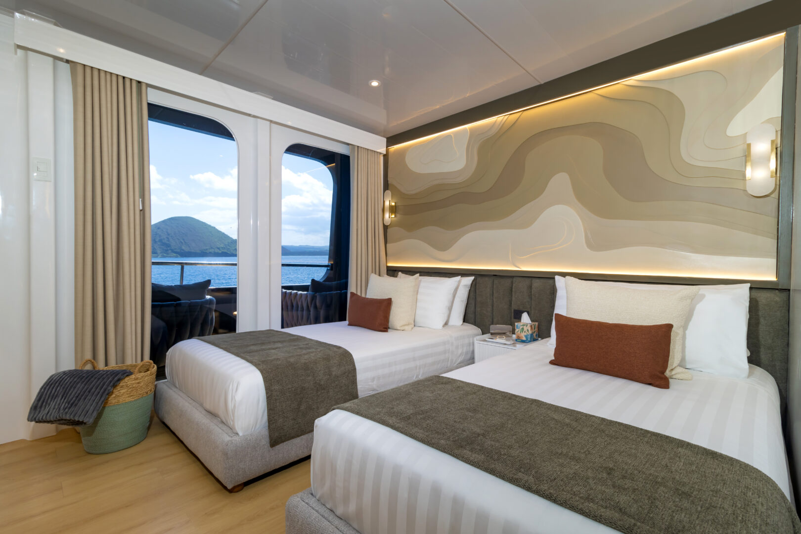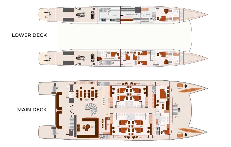 Explore the Galapagos Islands on board this 16-passenger luxury catamaran. The Galaxy Sirius offers a unique guide-to-passenger ratio of 1:8, one of the best in the Galapagos. Onboard facilities include an upscale living room, a sundeck, an alfresco lounge, a dining room, and a bar. The Sirius has two dinghies ready to explore the coasts, inlets, mangroves, and bays, and admire the Galapagos flora and fauna. Snorkeling equipment, wetsuits, and four kayaks and paddle boards are also available.