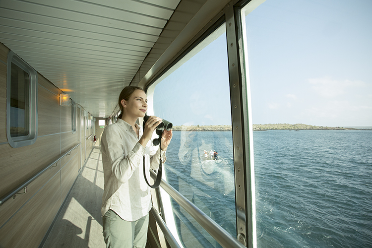 The Isabela II is a 40-passenger first class yacht. This stylish boat is fully air conditioned and offers ample social areas on its three decks, including a bar and lounge, dining room, and a sun deck with a bar, Jacuzzi, and solarium. The ship also has a glass-bottom boat, providing additional opportunities to observe the local marine life. With three high quality naturalist guides aboard, the Isabela II is an elegant and inviting way to explore the Galapagos.