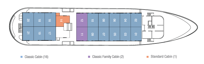 Single Supplement: Twin / Double Cabins for single use incur a 50% surcharge (100% during peak season) of the price per person