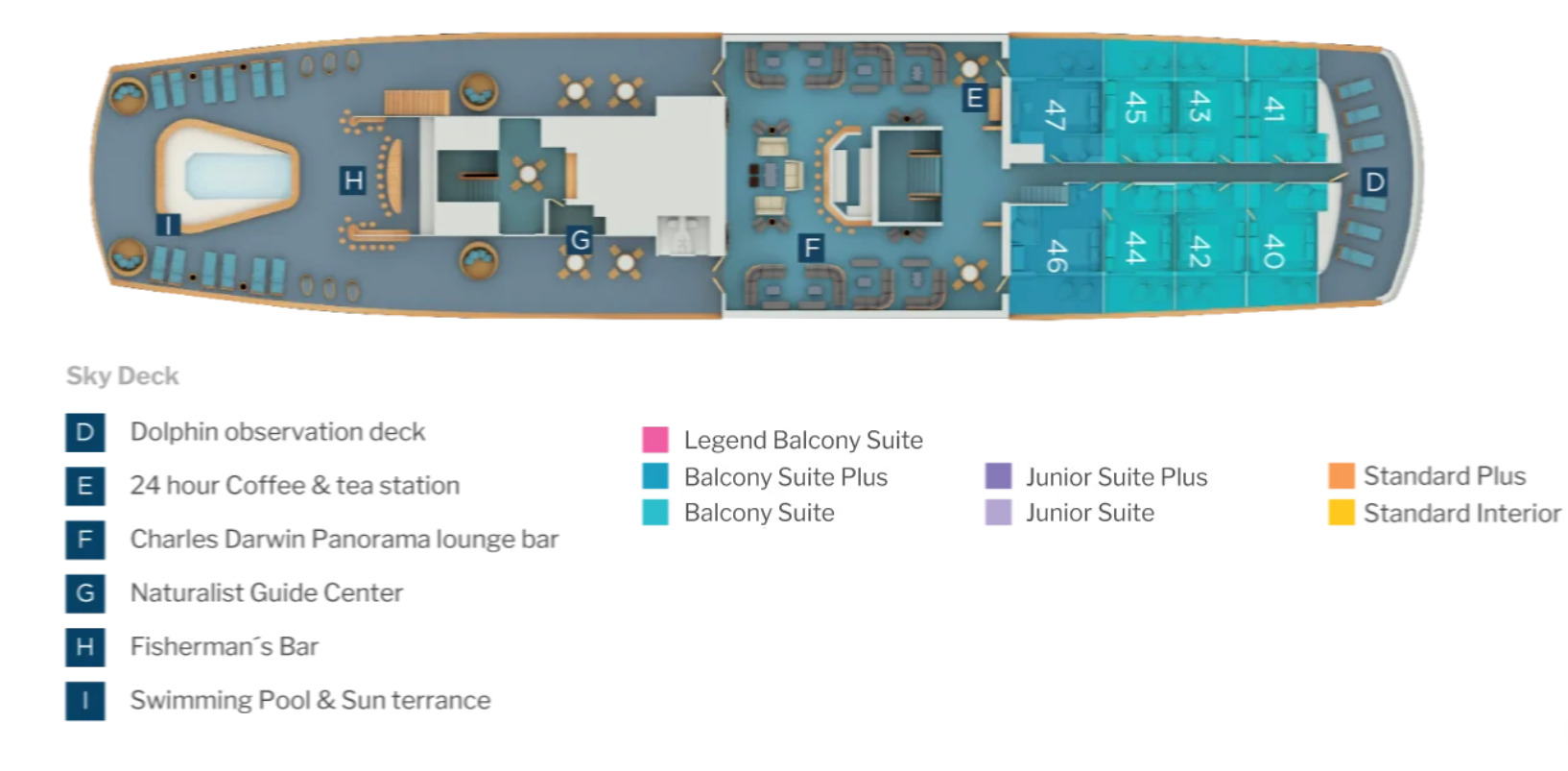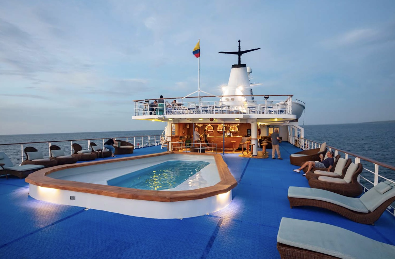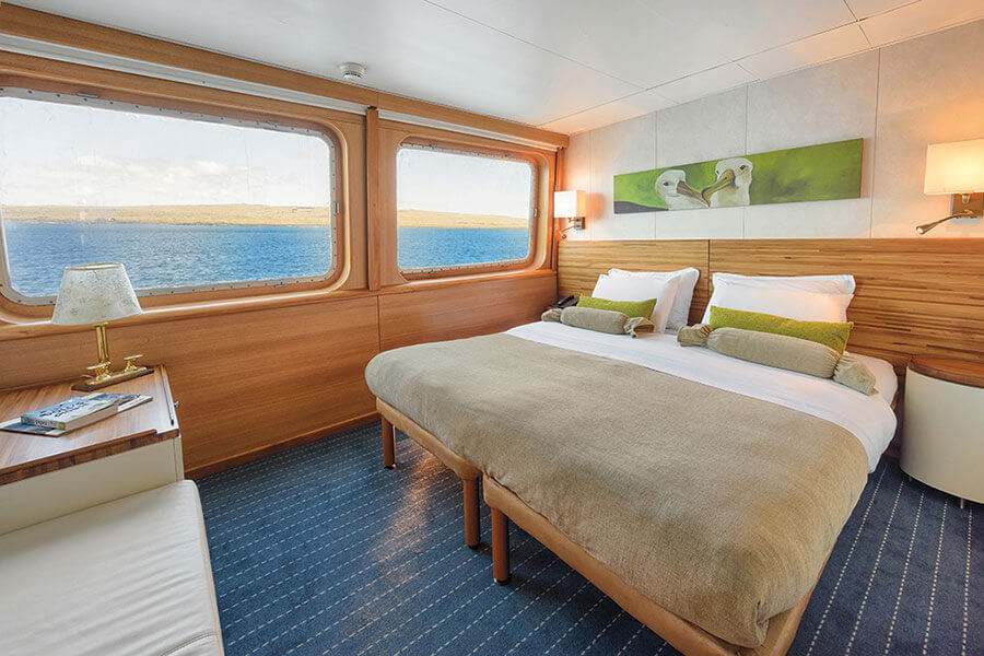 The Galapagos Legend combines the amenities of a larger cruise liner with the intimacy of small ship. This 300-foot ship has a fascinating history, having served as a cruise ship, military hospital ship, and casino ship before being outfitted for Galapagos expeditions. The Legend has capacity for 100 passengers, and offers comfortable cabins and plenty of open areas for socializing and taking in the scenery. With top quality naturalist guides, the Legend is a great choice for exploring the Galapagos, and with its extra room can be an excellent option for families with kids.