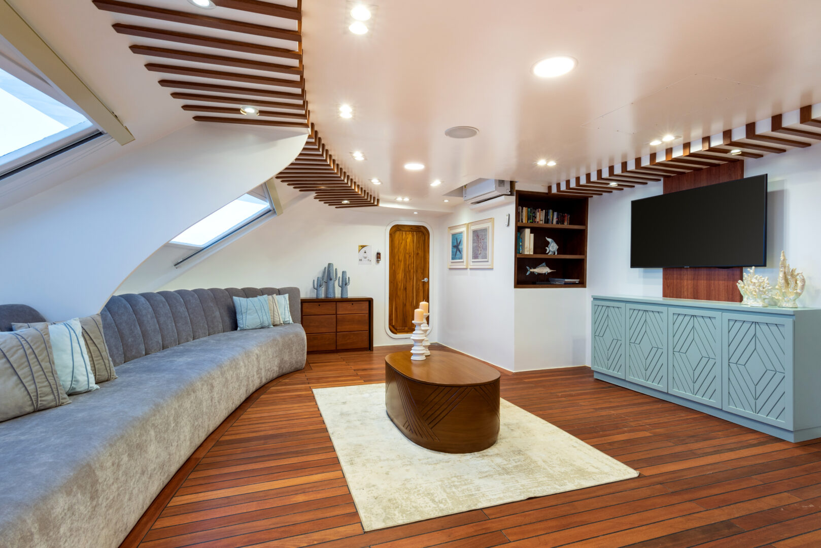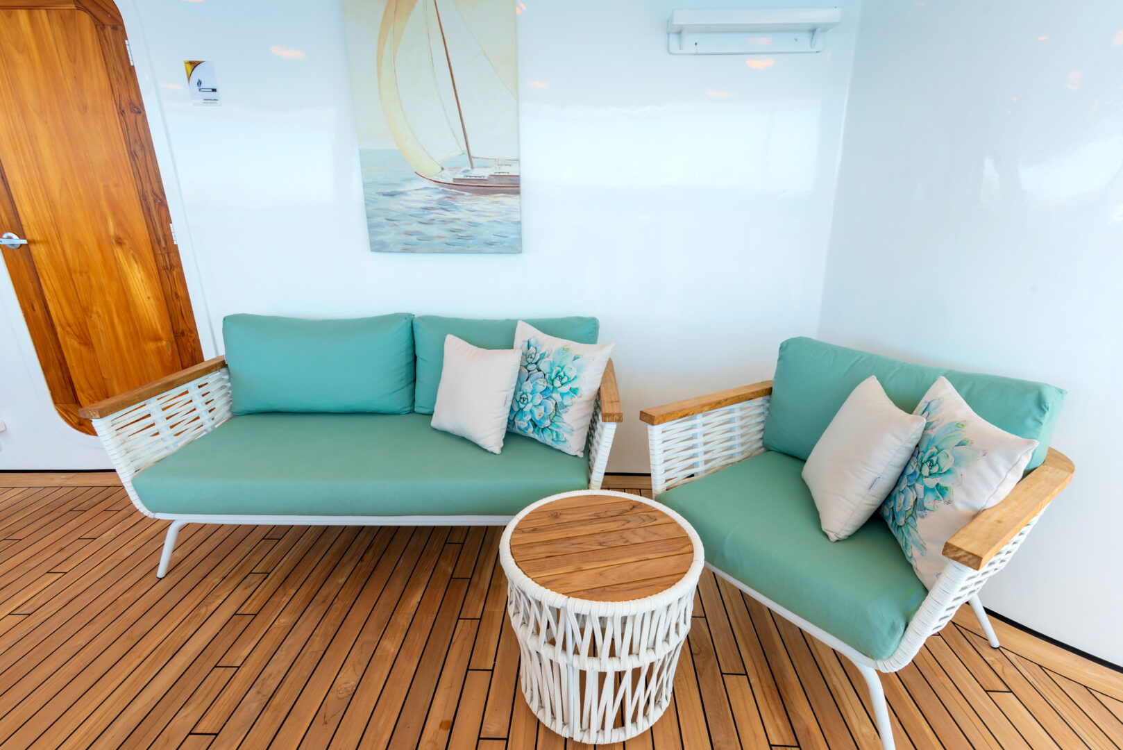 The Ocean Spray is a standout among Galapagos catamarans. Each cabin features a private balcony, allowing you to take in the islands’ dramatic landscapes from the privacy of your room. With a large sundeck, inviting social areas, and smooth performance at sea, the Ocean Spray feels both refined and relaxed. Guided daily excursions—led by expert bilingual naturalist guides—include snorkeling with sea turtles, hiking across volcanic terrain, kayaking quiet coves, and paddleboarding calm coastal waters. Consistently praised by past travelers, this is one of the most sought-after ships for exploring the Galapagos Islands.
