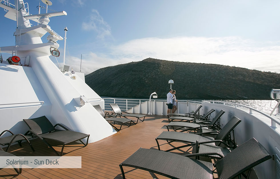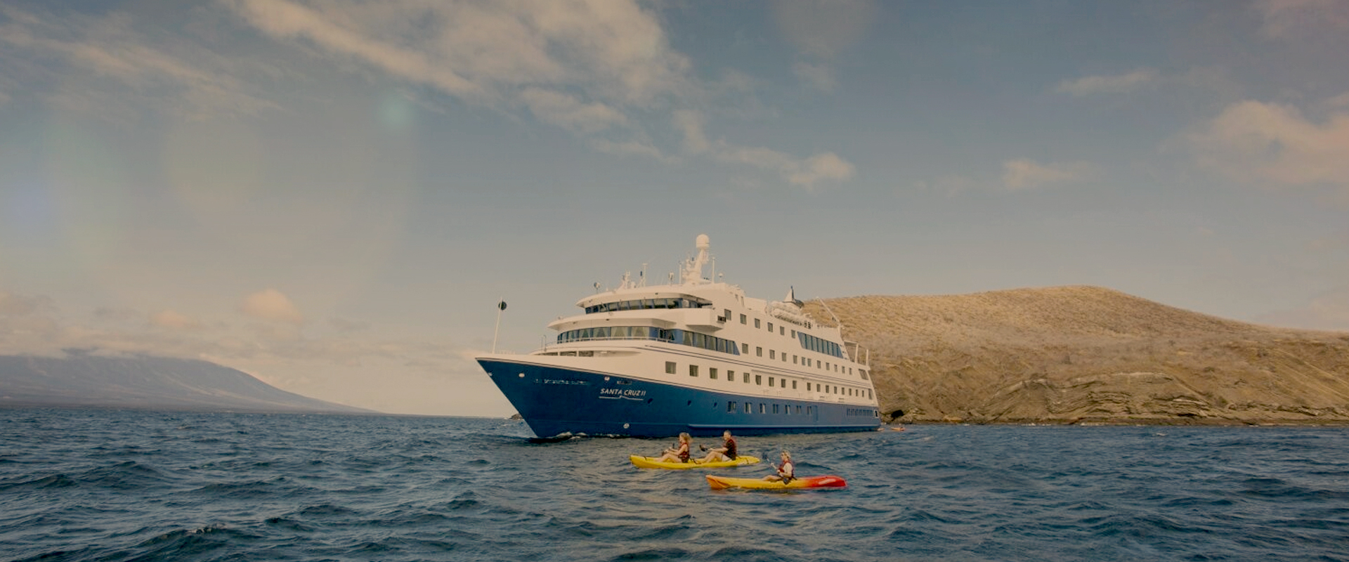 The Santa Cruz II has 50 cabins accommodating 90 guests. The ship offers large indoor and outdoor social areas, including a library, bar and lounge, barbecue and al fresco dining, and sun deck with Jacuzzi. The ship has multiple lecture areas for nightly activities and seminars. The Santa Cruz II has an average of 11 guests per guide, one of the best guest-to-guide ratios in the islands. Meals are planned by a Cordon Bleu trained gastronomy director. Activities include excursions in the glass-bottomed boat, kayaking, hiking, and snorkeling.