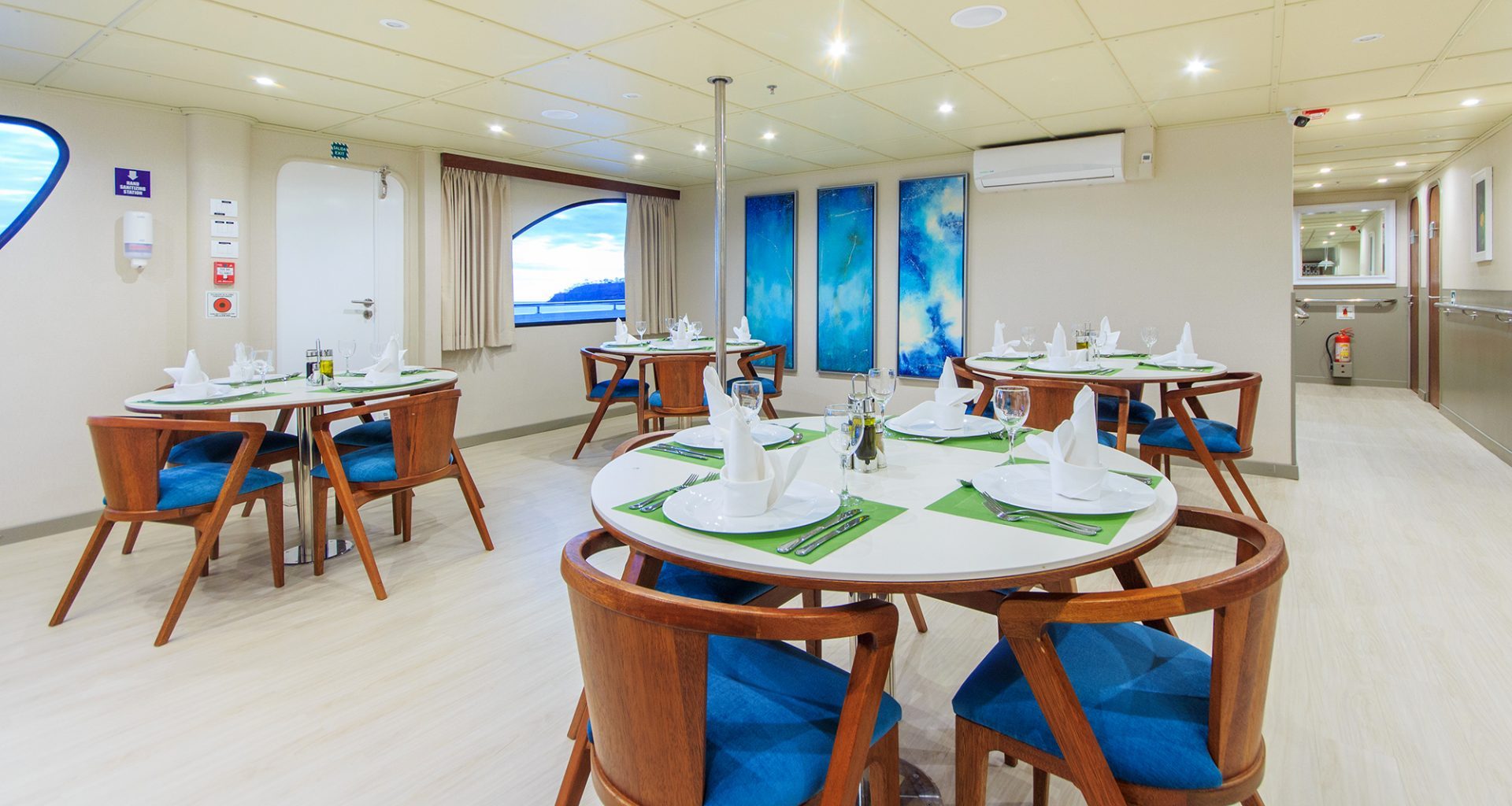 The Tip Tov V is part of the family of Tip Top vessels (including the Tip Top II and the Tip Top IV). Two are catamarans and one is a yacht. The Tip Tov V is the newest catamaran in the fleet and includes 8 cabins for up to 16 people. Onboard social areas include a dining room, salon room, comfortable lounge, bar & salon, and observation and sun deck. All excursions are done in the company of a bilingual naturalist guide. Activities available on the Tip Top V include hiking, snorkeling, and kayaking.
