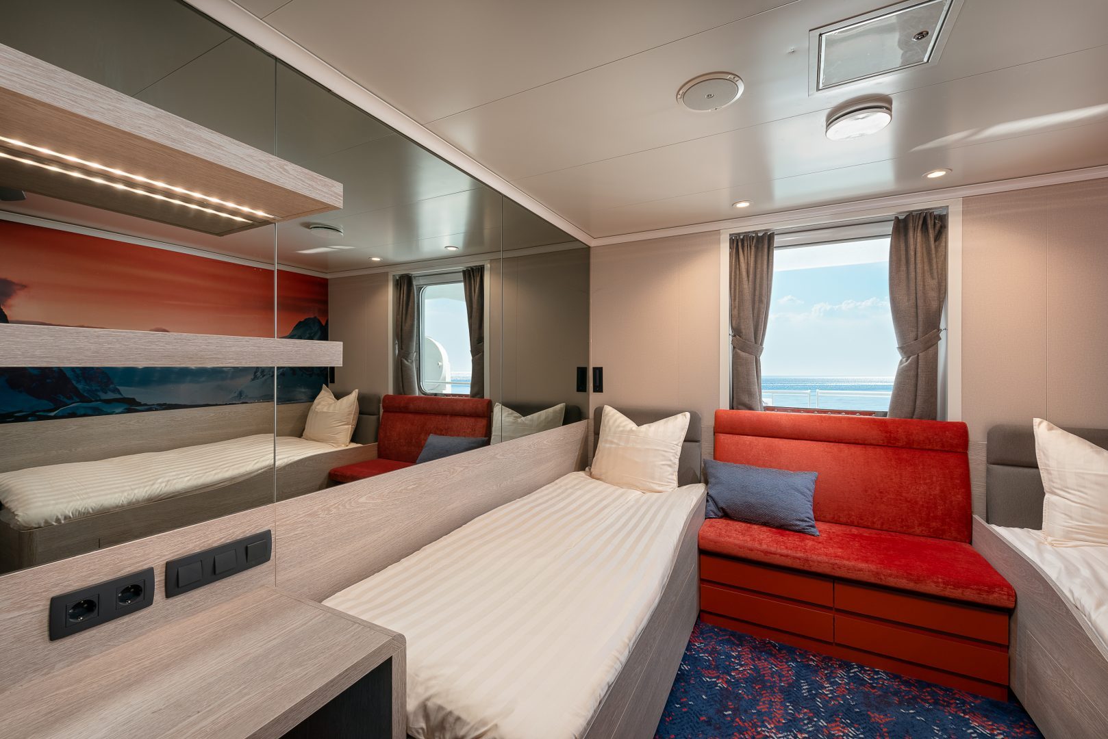 Triple Porthole – 2 portholes, 1 upper & 2 lower berths, small sofa