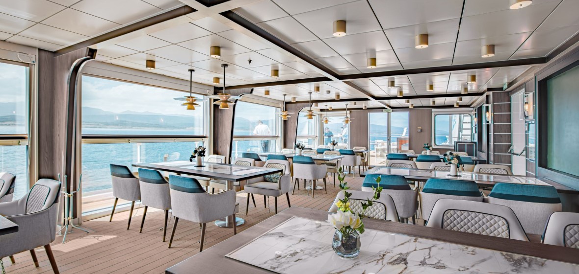 Passengers: 189 Cabins: 93 Ice class: 1A (highest) Built: 2020 Crew: 100 Ice class: 1A Length: 104.4m Breadth: 18.4m Polar Spa / Wellness Area / Gym Dedicated single state rooms All staterooms with Ocean View 90% of all staterooms with Panoramic Balcony Restaurant on Deck 5 Observation Speciality Restaurant on Deck 9 Swimming Pool, Jacuzzies and Pool Bar