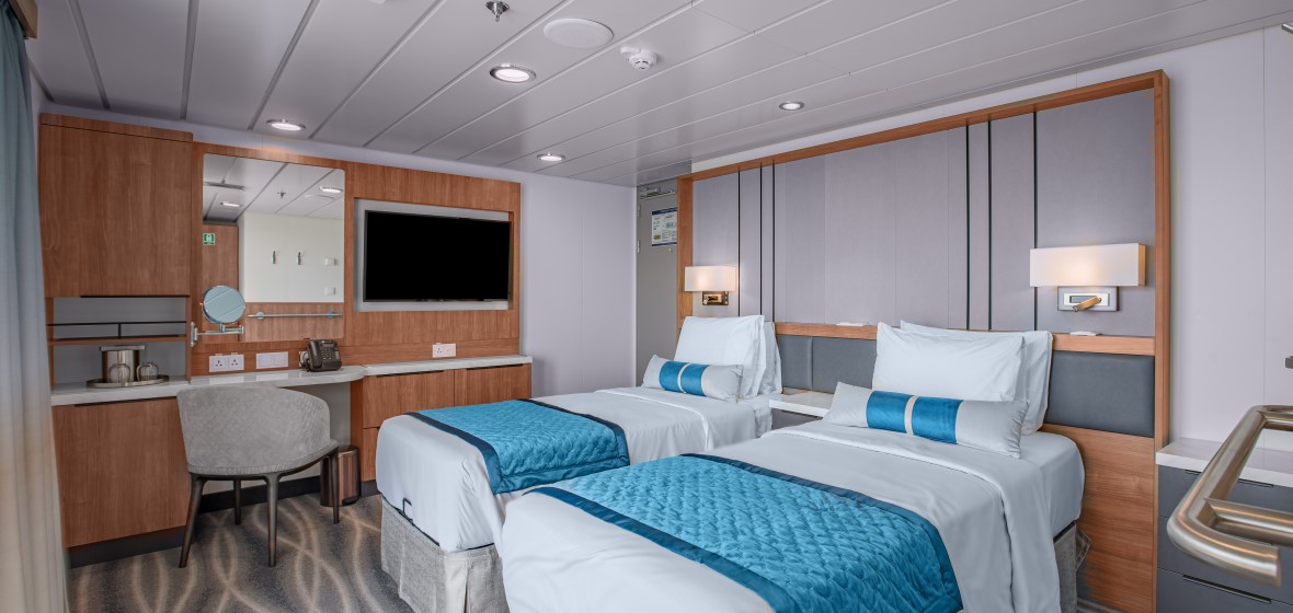 Premium Suite (485 sq. ft.) – The largest of all the cabins on board the Ocean Victory is the Premium Suite. This 2-bedroom suite features a double bed (or twin beds), a sofa bed, table and chair, a private observation deck and spacious bathroom. Located on deck. 4.