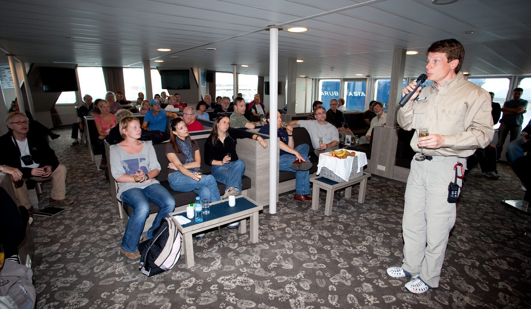 The Plancius is comfortable and nicely decorated but is not designed as a luxury vessel. The voyages in the polar regions are primarily defined by exploratory educational travel programs, spending as much time ashore as possible. The vessel is equipped with a diesel-electric propulsion system which reduces the noise and vibration of the ship considerably. The 3 diesel engines generate 1.230 horsepower each, giving the ship a speed of 10 – 12 knots. It is ice-strengthened and was specially built for oceanographic voyages. The Plancius is manned by an international crew of 37 (18 nautical crew and 19 hotel crew), 8 expedition staff (1 expedition leader, 1 assistant expedition leader, and 6 guides/lecturers), and 1 doctor.