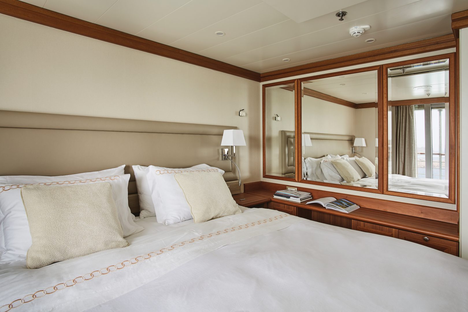 Owner’s Suite – The name says it all. A stylish apartment. Prestigious and classic. For those who seek the superlative level of space, comfort and service on board. For those who expect the finest from a luxury cruise. (728 sq. ft. including private balcony)