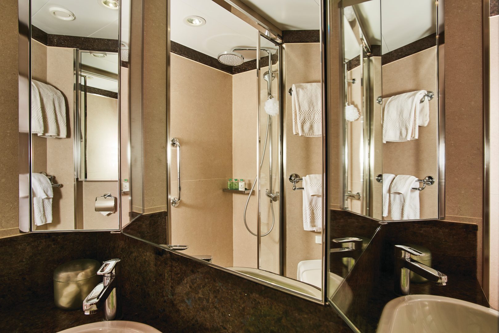 Silver Suite – Spacious, with a welcoming sitting area, a marbled bathroom and your own private balcony. Silver Suites can accommodate three guests. (422 sq. ft. including 2 french balconies)