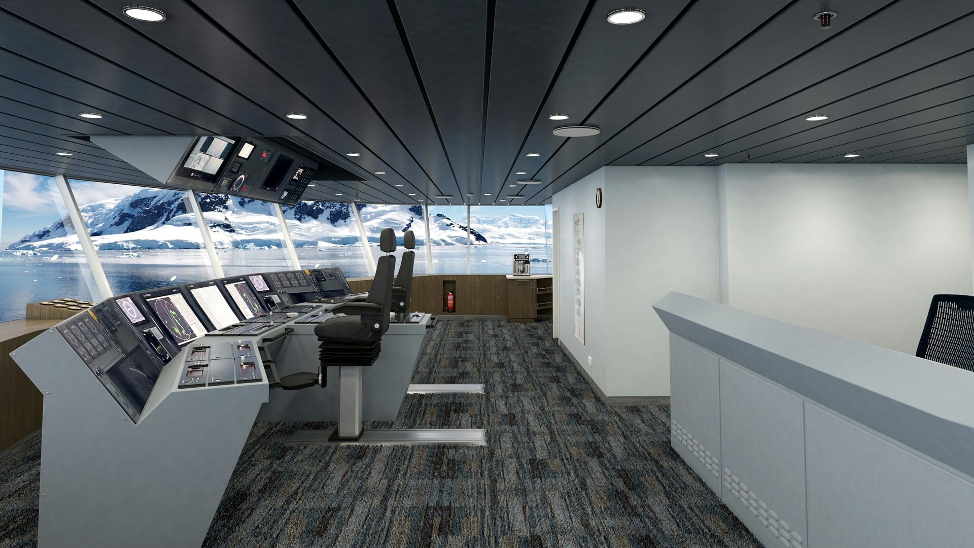 Aurora Stateroom Superior – With a bit more room to stretch the legs, the Aurora Stateroom Superior cabins are perfect for polar adventurers who travel with plenty of gear. Located on Deck 7, the Staterooms feature French balconies, floor-to-ceiling windows, ensuite bathrooms, and a comfortable desk area.