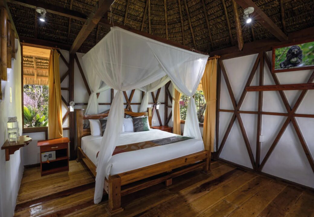The Napo Wildlife Center is located in Yasuní National Park, a UNESCO Biosphere Reserve and part of the Amazon Rainforest. The lodge sits on the shore of Añangu Lake, within the ancestral territory of the Añangu Quichua Community. Each of the 16 individual cabañas are screened against insects, and each offers a private terrace with lake and rainforest views, a private bathroom, electricity, and a ceiling fan. The central structure of the complex, where meals are served, also offers several comfortable social areas, including a bar and reading lounge. Excursions are co-lead by experienced bilingual Ecuadorian guides and Añangu native guides, and include hiking, night walks, birding, canoeing, and climbing the two observation towers to look out over the jungle.