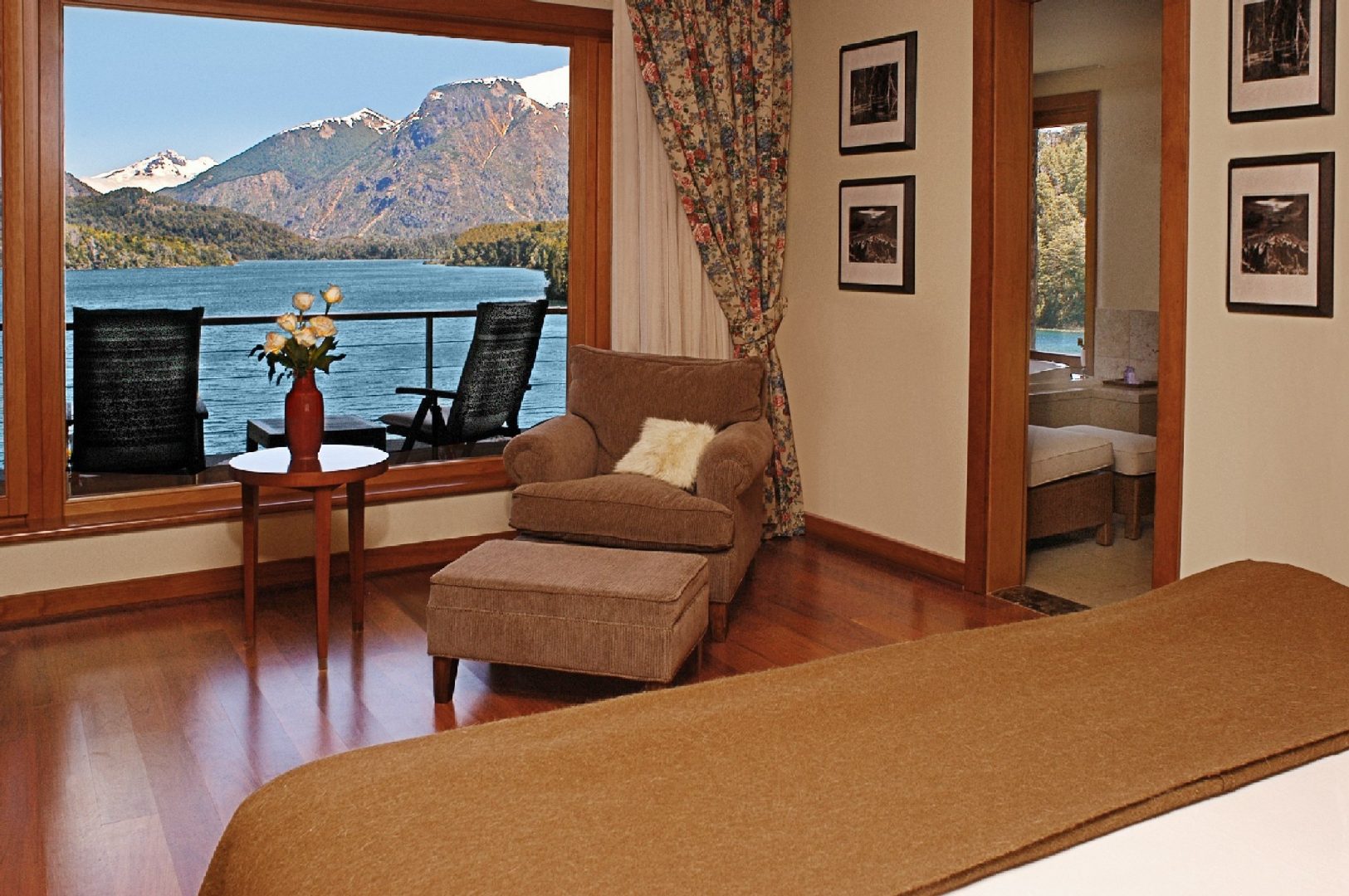 Fly to Bariloche, on the shores of scenic Lake Nahuel Huapi. The area offers a range of activities for nature lovers, including hiking, horseback riding, biking, rafting, swimming, fly fishing, and boating. Your luxury hotel, located right on the lake, reflects the charm and style of the area and offers magnificent views.