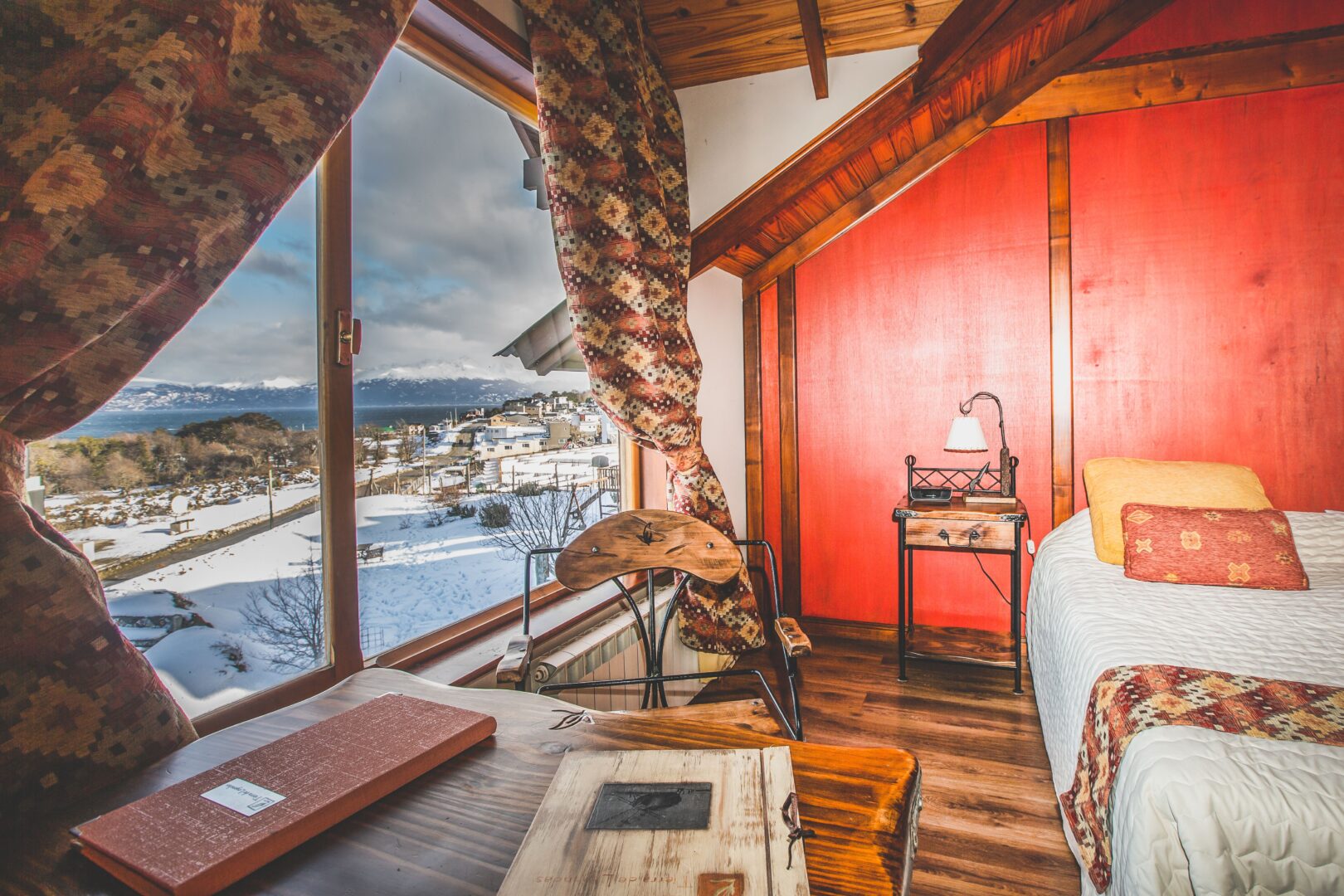 Tierra de Leyendas is a small boutique hotel set in a restored house overlooking the Beagle Channel on the outskirts of Ushuaia. The property features seven individually decorated rooms, each inspired by regional history and exploration, with large windows framing views of the channel, mountains, or garden. Facilities include a restaurant exclusive for in-house guests, a Jacuzzi, a cozy lounge, a small library, and landscaped gardens.
