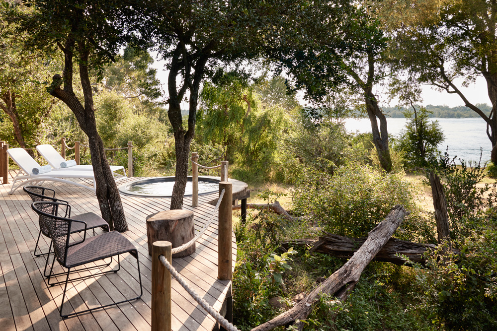 Nestled on the banks of the mighty Zambezi River is the Victoria Falls River Lodge. Guests can enjoy wonderful wildlife viewing opportunities, impressive accommodations, fine dining, easy access to the historic town of Victoria Falls, and luxury thatched tents. Each tent is constructed of canvas, has air-conditioning, and extends out onto a private deck with its own plunge pool.