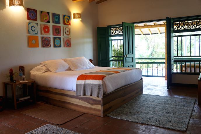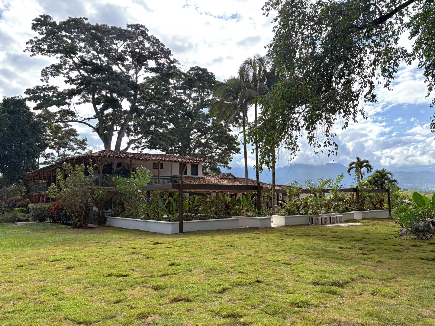 Hacienda Bambusa is located in the southern part of the coffee region, set among tropical fruit plantations. The house is built in the style traditional to this region, made of guadua bamboo and clay tiles and arranged around gardens and centenary trees. The hacienda's seven rooms offer private balconies overlooking the swimming pool, the gardens, or the surrounding Andes Mountains. The hacienda is a working ranch, and cultivates cattle as well as cocoa, ginger, plantains, bananas, and tangerines. Many of the restaurant's dishes are prepared using products cultivated right on the hacienda.