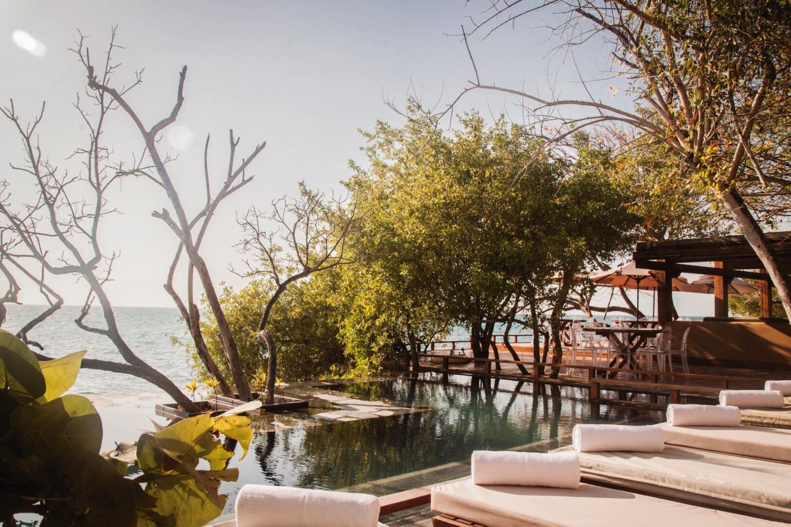 Journey via speedboat from Cartagena to Isla Barú. Settle into your immaculately appointed bungalow, with its views of the sea or of the neighboring National Park (Natural Corales del Rosario y de San Bernardo). Visit one of the restaurants and bars for locally sourced, expertly prepared cuisine. Relax by the freshwater pool, take in the views from the solarium or explore one of the many activities available at the hotel.
