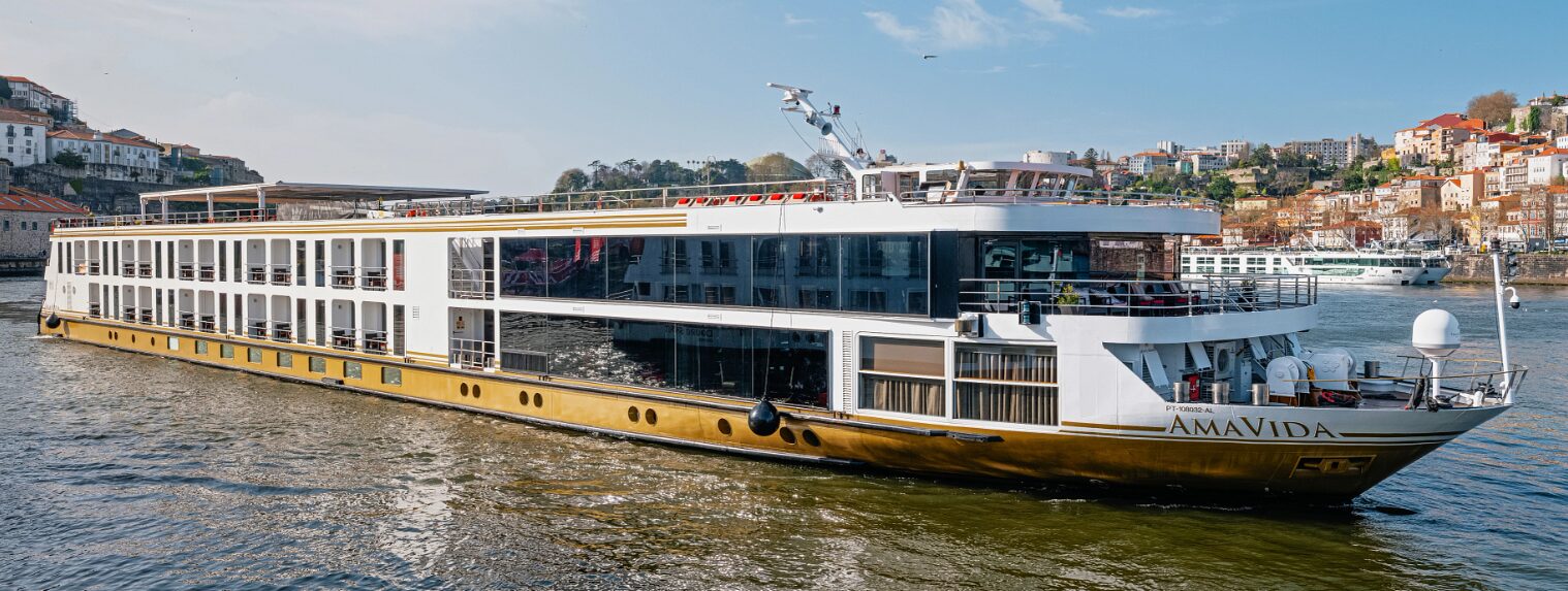 The AmaVida is a stylish river cruise vessel that sails along the Douro River through Portugal and Spain, offering an intimate and comfortable experience with just 51 staterooms. Most cabins feature outside balconies, and amenities include a sun deck with a heated swimming pool, a fitness center, massage and beauty salon, and complimentary Wi-Fi throughout. Guests enjoy regionally inspired cuisine and local wines in the main restaurant and a more intimate chef’s table venue. The AmaVida has décor reflecting classic Portuguese elegance