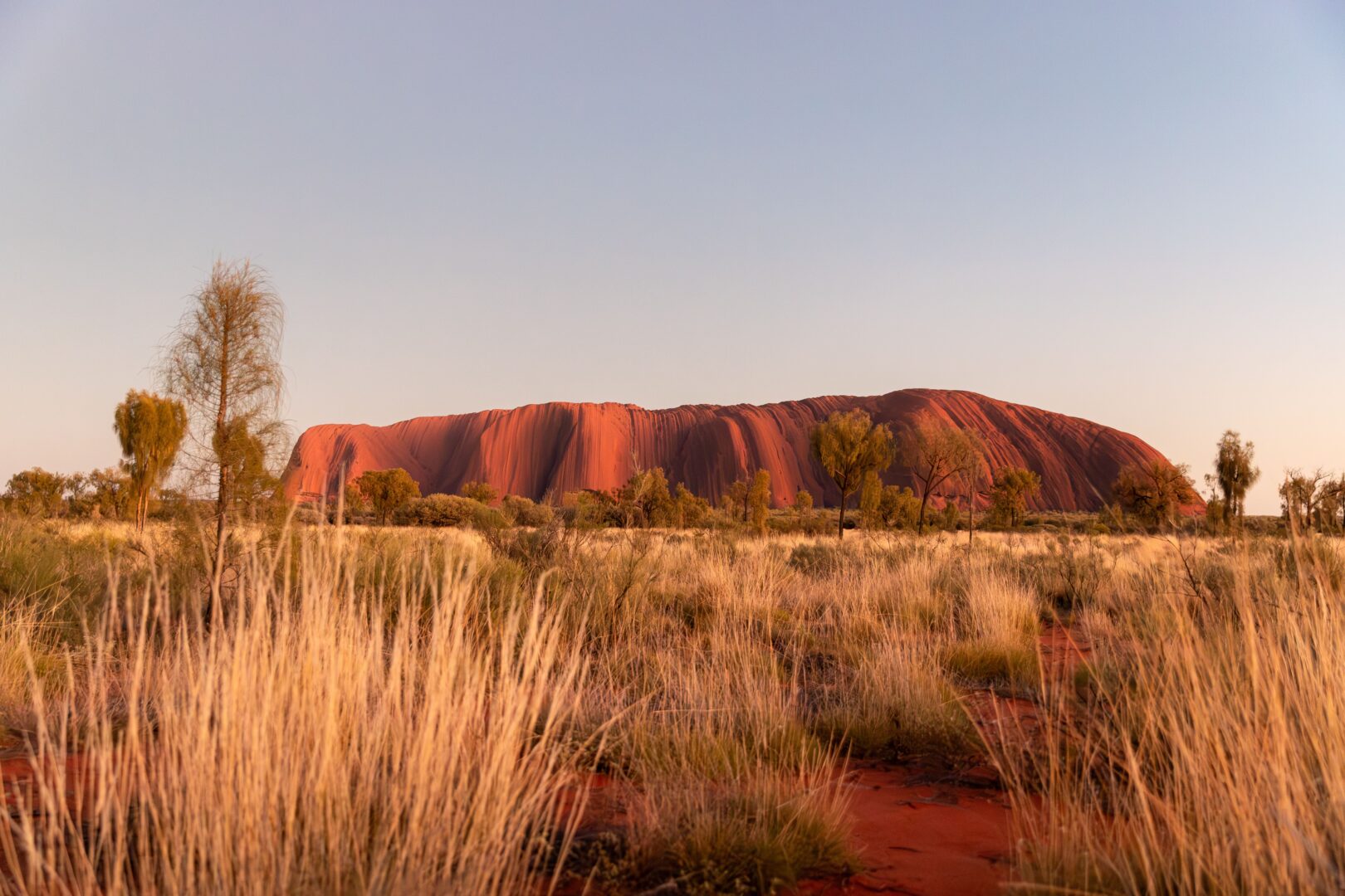 Begin your day with a private sunrise tour of Uluru, departing your hotel before dawn. As the sun rises, watch the light gradually reveal the majesty of the rock’s vast form. Your guide will share the creation stories of the Liru (poisonous snake), Kuniya (python), and the Mala people, offering insight into the spiritual significance of this land. After a light breakfast, visit the peaceful Mutitjulu Waterhole and take a scenic drive around the base of Uluru.