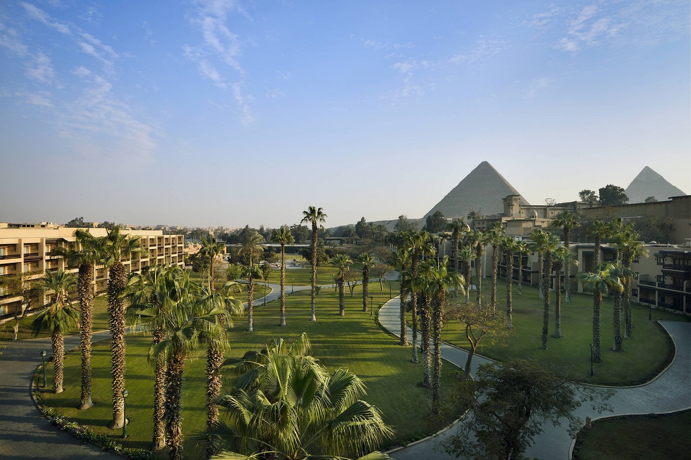 Located in Cairo, this hotel offers uninterrupted views out over the Giza Plateau and the Great Pyramids. The hotel is an oasis of calm in the city, surrounded by over 40 acres of lush gardens, and features a pool, spa, fitness center. Originally built in 1869, this historic property offer several room categories, many with a full views of the pyramids right out the window.
