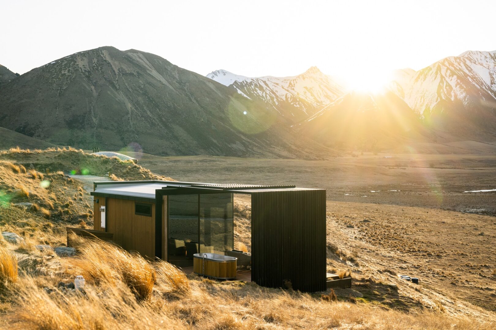 The Lindis is a striking luxury lodge hidden in the remote Ahuriri Valley of New Zealand’s South Island, designed to disappear into its dramatic high-country landscape. Its sweeping, curved roofline mirrors the surrounding hills, while interiors feature natural stone, timber, and glass that frame expansive views of tussock plains and rugged mountains. The lodge offers just a handful of suites, including ultra-secluded glass-walled pods set away from the main building for complete immersion in nature. Guests can enjoy refined dining with produce sourced from the region, fly-fishing in world-renowned streams, guided horse trekking, e-biking, and stargazing under some of the clearest skies in the world. The combination of architectural daring and pristine wilderness makes The Lindis one of New Zealand’s most unique retreats.