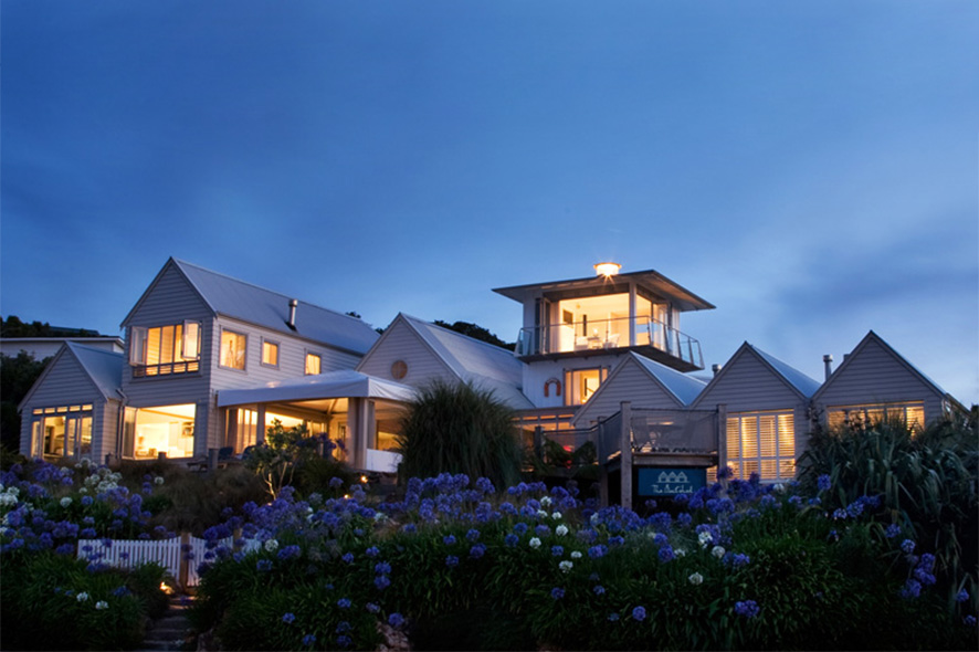 The Boatshed is an intimate boutique hotel set on a hillside above Oneroa Beach on Waiheke Island, offering panoramic views of the Hauraki Gulf. Designed to feel like a stylish beach house, it features just a handful of suites and bungalows, each individually decorated with light-filled interiors, private decks, and thoughtful touches like open fireplaces and freestanding tubs. The hotel’s restaurant focuses on seasonal produce from the island, with meals often tailored to guests and served in relaxed, personal settings. It offers direct beach access, landscaped gardens, and an emphasis on privacy and detail.