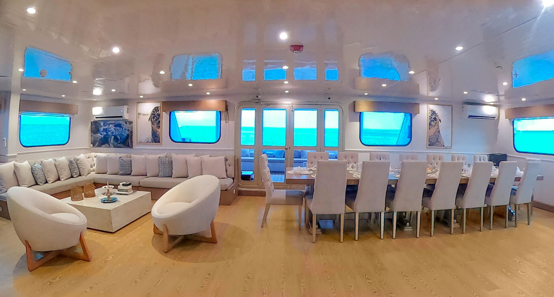 The Seaman Journey is a boutique first-class catamaran offering superior comfort, style, and stability. With a capacity of just 16 passengers, guests enjoy personalized service in an intimate small ship setting. The ship features well-appointed, spacious social areas, with a bar, lounge, dining room, and sundeck, attended by experienced, friendly staff and crew. Cabins are bright and comfortable, with ocean view picture windows. Excursions are led by certified bilingual naturalist guides and include nature hikes, zodiac rides, snorkeling, kayaking, swimming, and of course time out to relax on the beach.