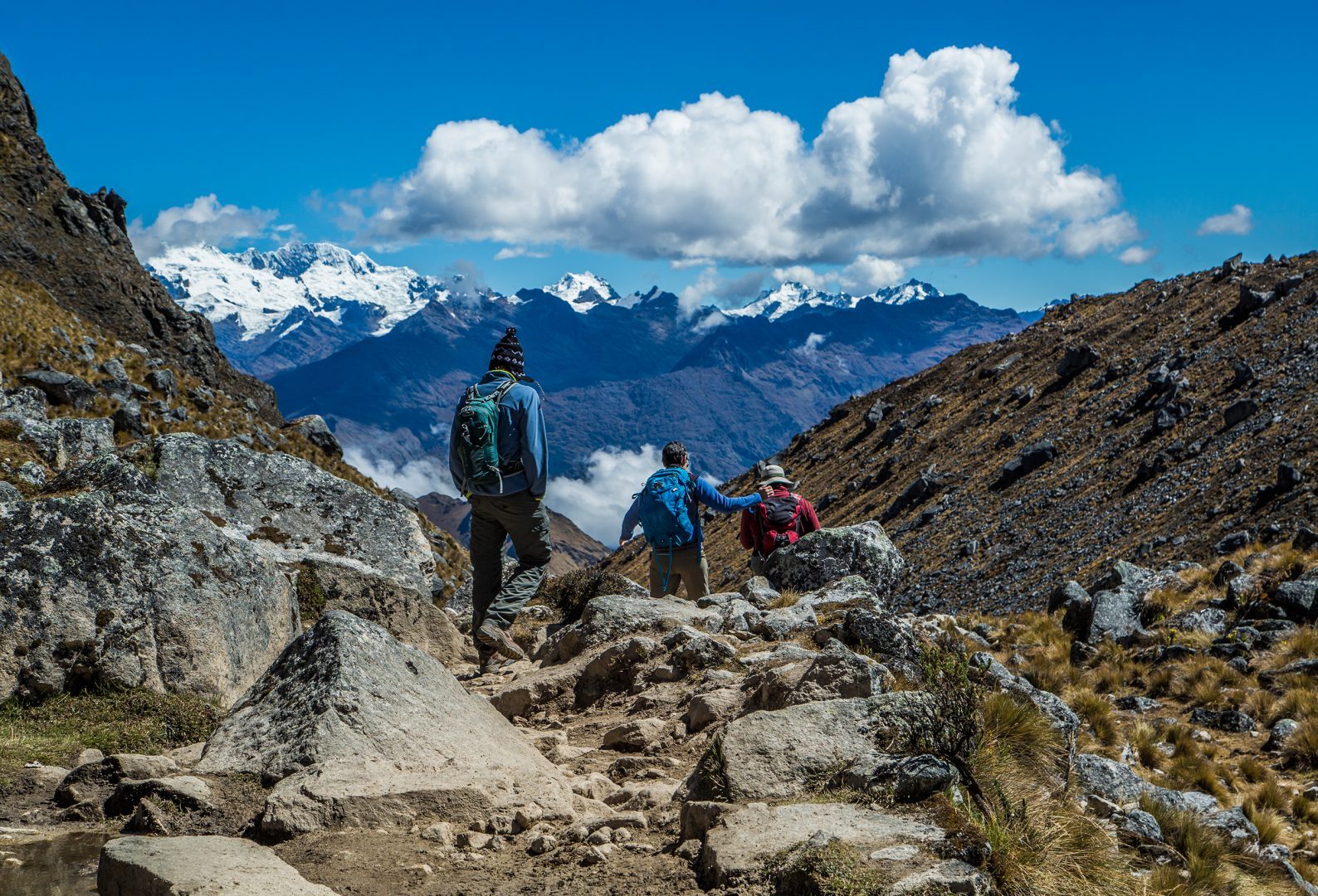 Hike up the Rio Blanco Valley toward Mount Salkantay. After a few hours the trail starts up a series of switchbacks offering great views down the valley to the lodge you left behind. You will soon find yourself passing the highest point of the trek, just over 15,000 feet, with the south face of Salkantay towering over you. Start down to your second lodge, Wayra, passing by an ancient Inca road and rural settlements.