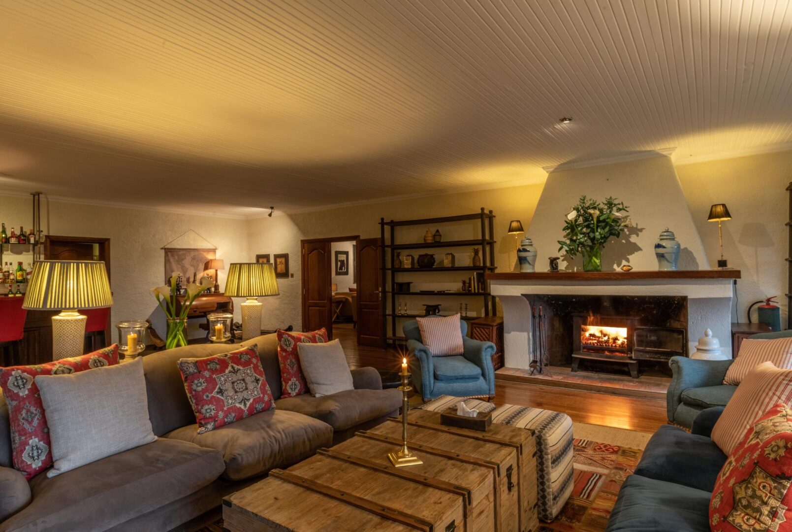 All guest cottages are discretely situated amongst the hills and the verdant vegetation of the Sabyinyo property. Each beautifully appointed ensuite cottage, with its country-chic style and open log fires, is a perfect haven of warmth and luxury. The main lodge building is designed with the guest in mind. Assorted seating areas in the main lounge, reception and entertainment room provide for intimate privacy, or the opportunity to meet other guests, and fireplaces throughout create a luxuriously warm and inviting atmosphere.