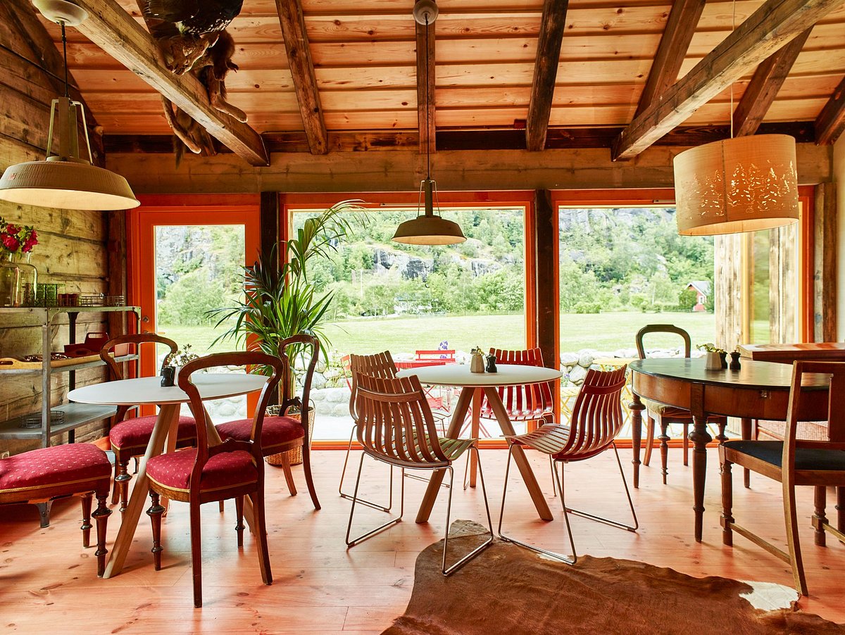 29/2 Aurland is a historic hotel on a restored farm with roots dating back to the 18th century. It features eight unique rooms across three buildings: "Fiskerhuset" (the Fisherman's Cabin), "Geitefjøsen" (the Goat Barn), and "Bestemorhuset" (the Grandmother's House). Enjoy dinner in the new "ETE" restaurant and relax in the "Eldhuset" lounge (the Smokehouse). The hotel also offers a spa with a wood-burning sauna and hot tub, and guests can explore the gardens, orchard, and horse pasture. A really unique boutique hotel in the heart of the fjords.