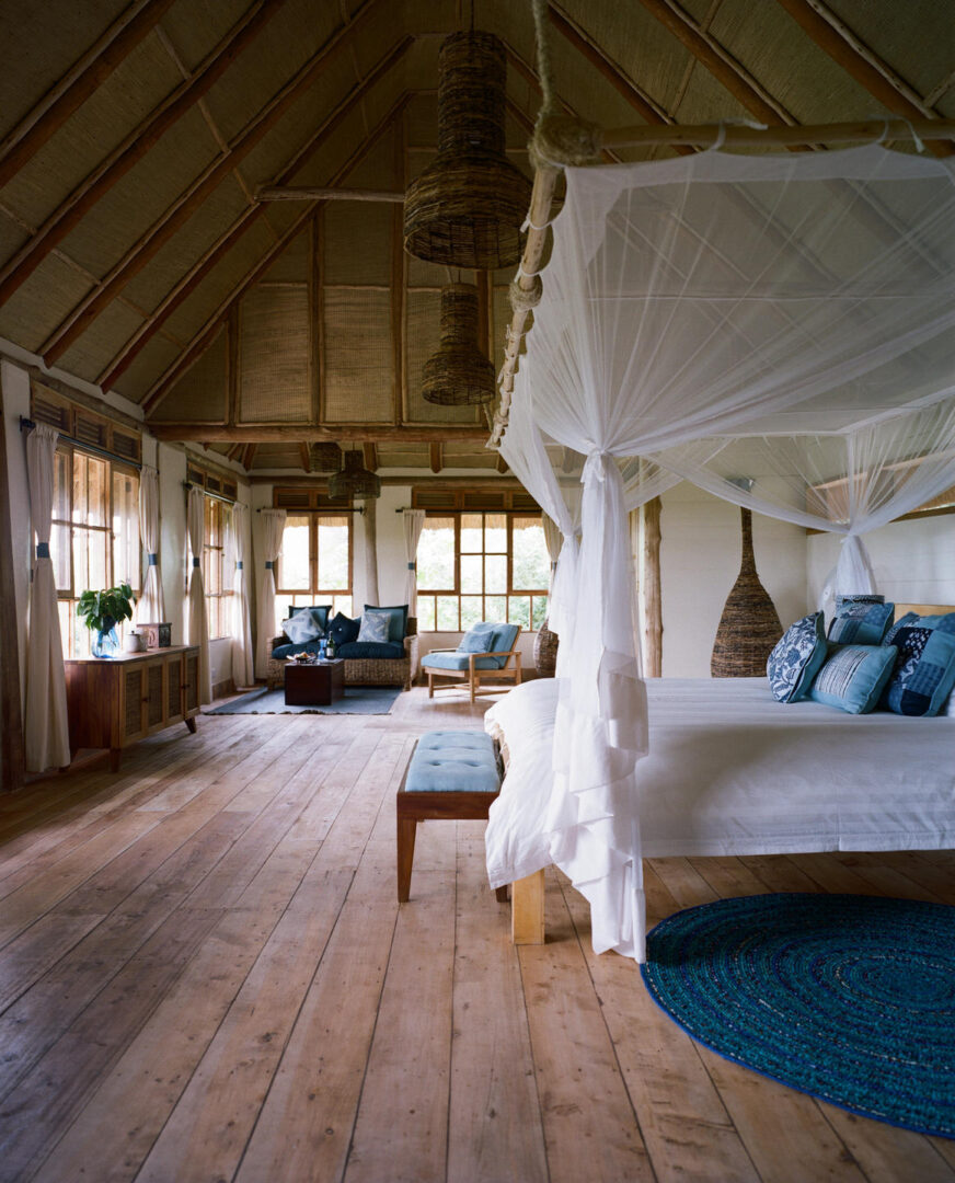 This eclectic safari lodge has been converted from an old coffee plantation, to create a breathtakingly beautiful and utterly unique lodge. Located the edge of Queen Elizabeth National Park with sweeping views of the rolling savanna, the distant Mountains of the Moon, and the sunken Kyambura Gorge. The lodge is the ideal location for tracking chimps in the sunken forest of Kyambura Gorge and game driving in one of Africa’s most beautiful and varied parks, Queen Elizabeth National Park, centered around the waterway of the Kazinga Channel where animals come to bathe. The park has six hundred amazing bird species, the highest in an African park.