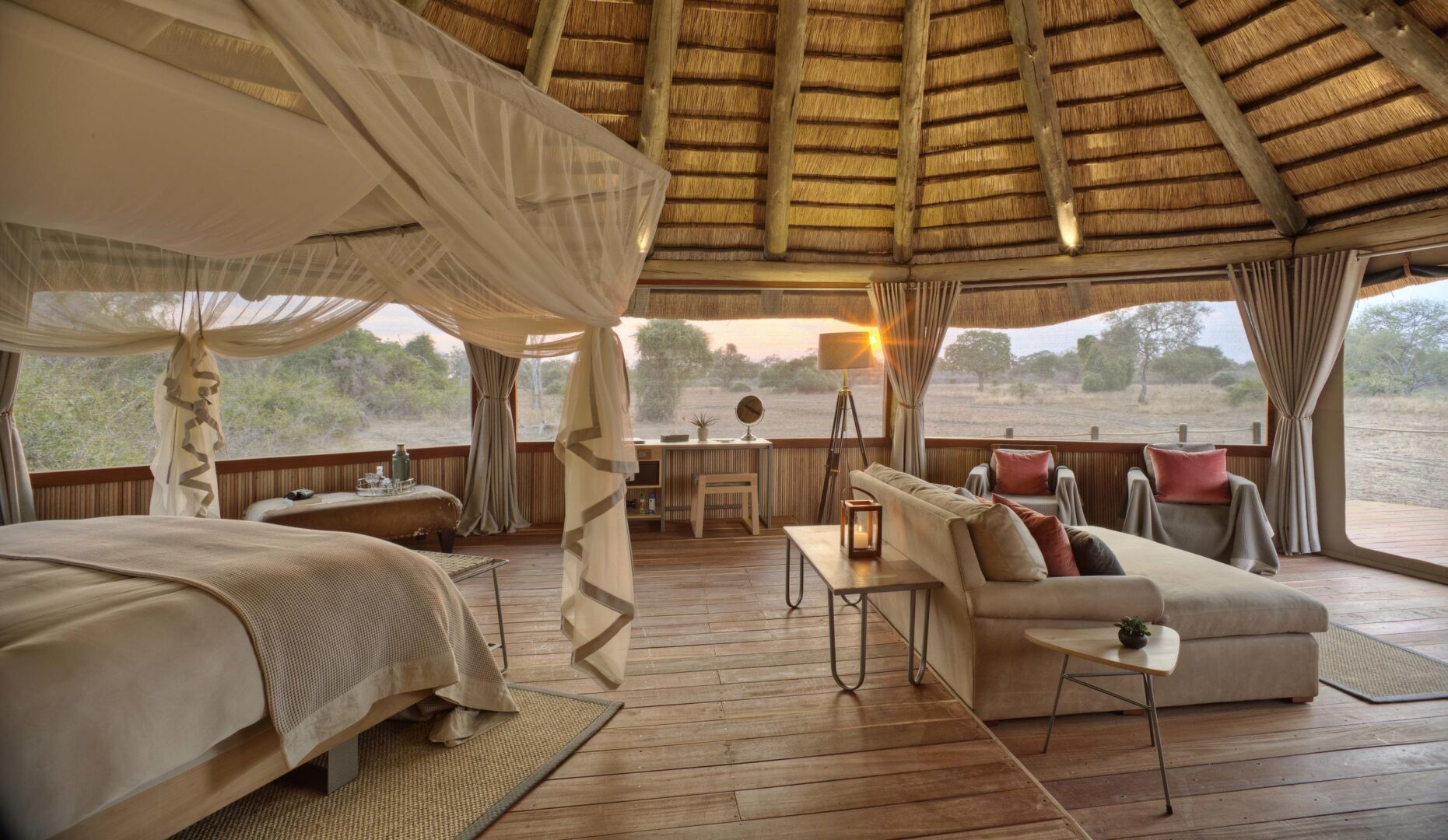 Wake up to an unobstructed view from your luxury tented suite at this intimate private camp and begin your first full day on safari.